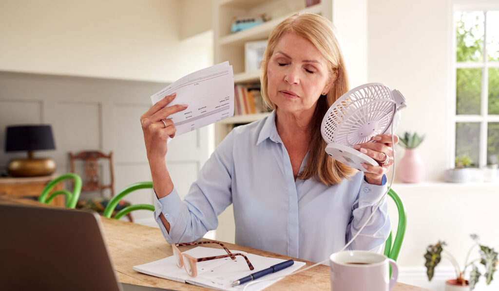 Hot flashes, fatigue, brain fog, low libido, weight changes, and mood swings.